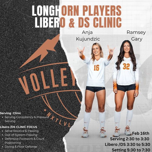 We’re excited to invite you to our Longhorn Players Libero & DS Clinic featuring Anja Kujundžić and Ramsey Gary.